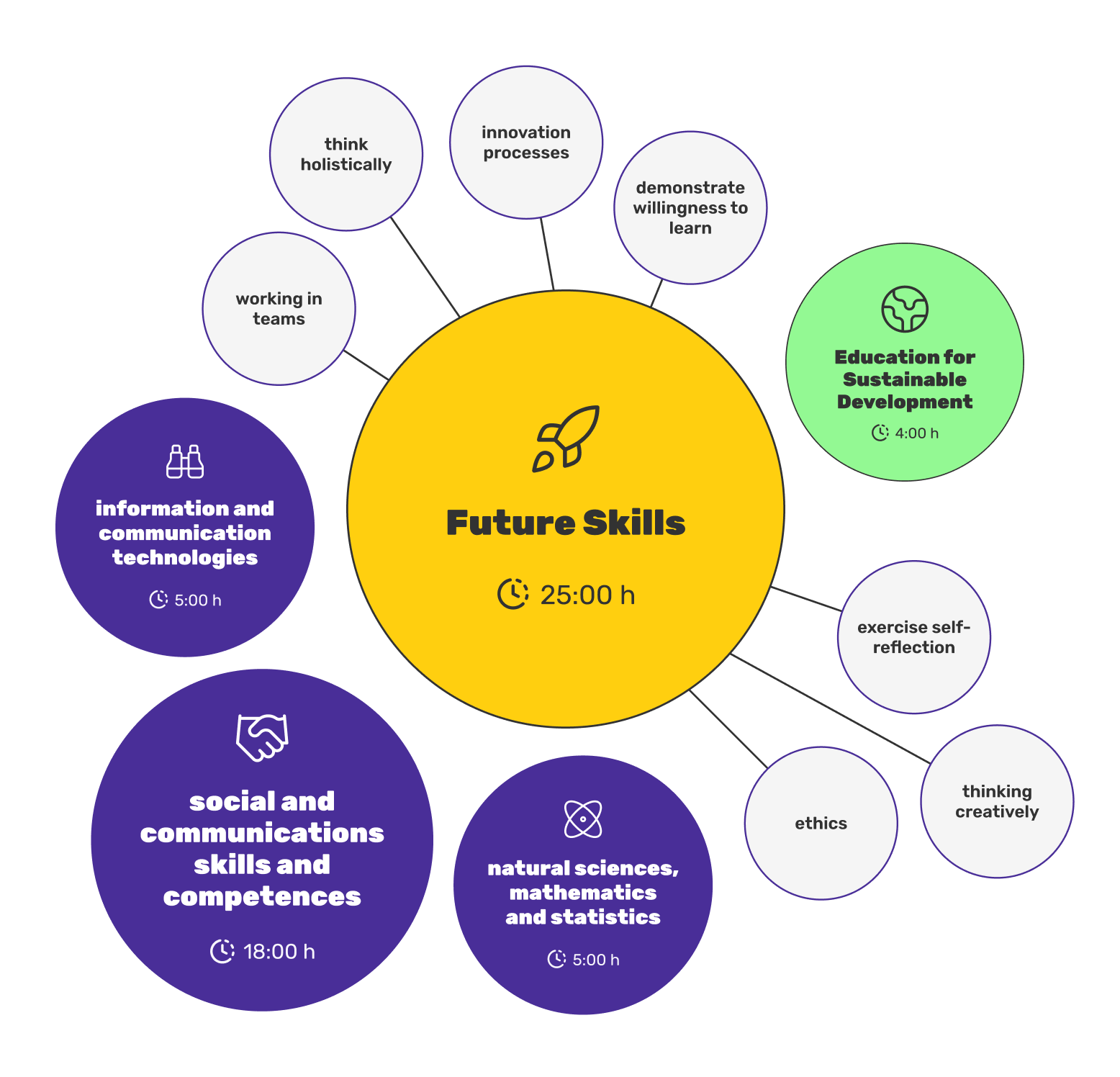 The Competency View in the OEB Wallet shows your learners how much time they’ve collectively invested in strengthening a specific competency – automatically summed up across all Badges. They also see their focus areas and development potential. This motivates them, boosts their self-confidence, and helps with career orientation!