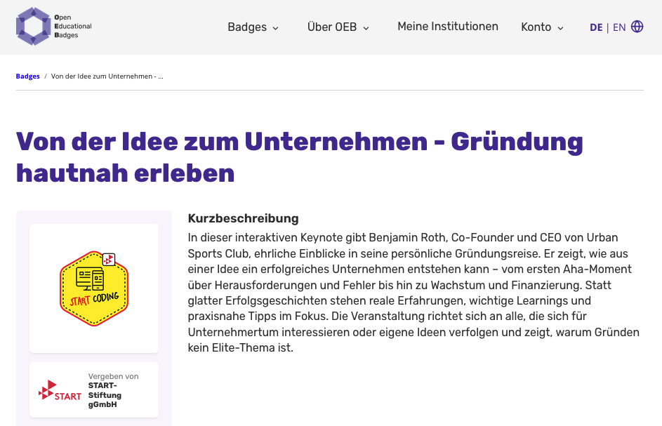 Badges sind bei START nicht nur Anerkennung für Lernende, sondern auch ein wertvolles Steuerungs- und Reflexionsinstrument für die Organisation. Katharina Bürkin betont den Mehrwert von OEB: